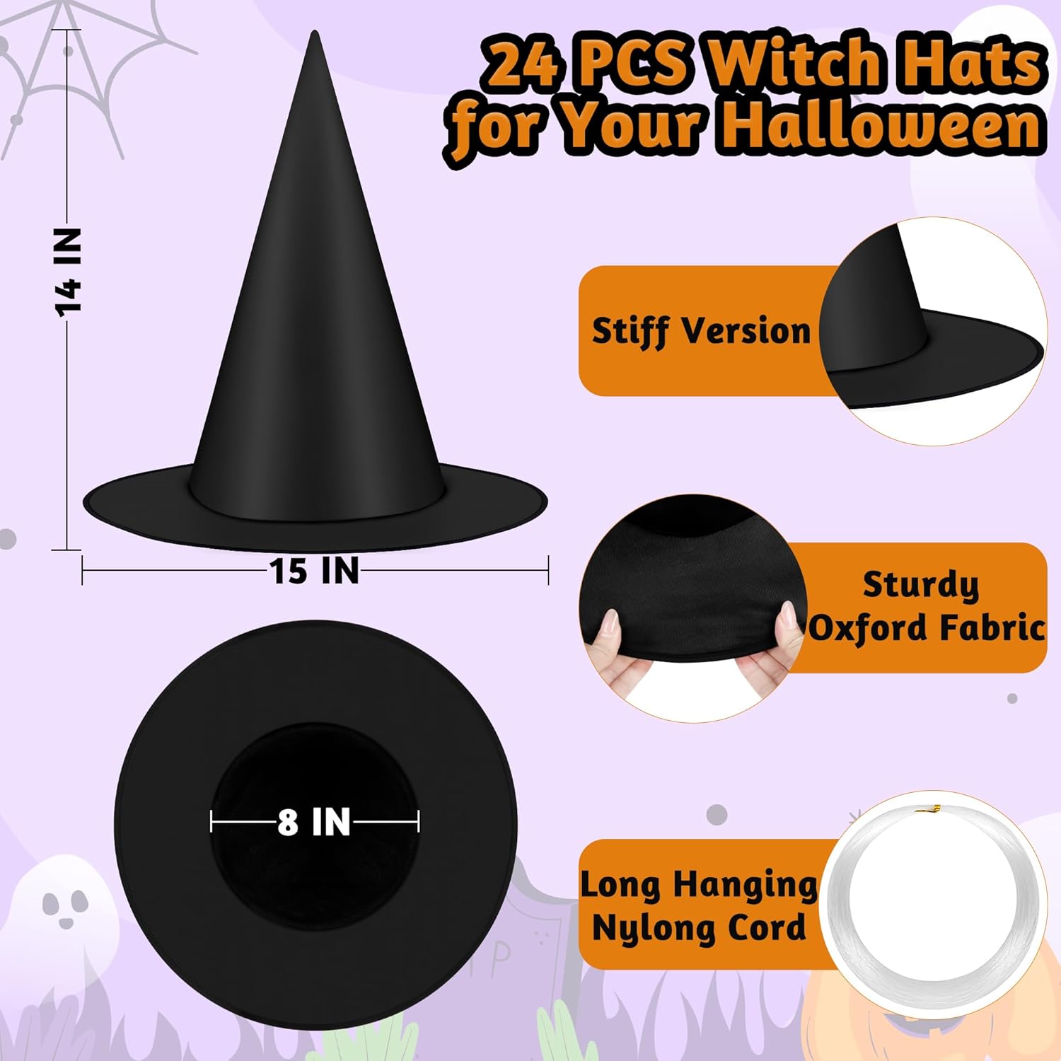 • Easy to Hang and Store: The edges of these witch hats can be twisted and folded, allowing for easy storage. Simply use a pin to pull the string from the top of the hat, tie a knot, and hang it wherever you desire.
